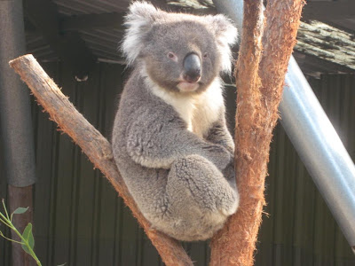 Halfway through the day, I passed another small sign indicating a wildlife park, and, again, I couldn't resist. I debated for a while and eventually turned around and went back. The park wasn't as big as the others, especially because they are renovating many of the displays, so it mostly consisted of some kangaroos, echidnas (including a cute baby), two koalas, some dingoes and some other birds. I made my way around the tiny park, feeding a few of the brave kangaroos and watching the spiky, baby echidna meander around its cage, looking like a black and white ball of spikes with a long pointy nose used for digging up bugs and ants in the ground. Soon, the bells of the tiny train were ringing, so the few other guests and I made our way back to the start of the park for a quick tour on the 3 car train that basically appeared to be a modified riding lawn mower. Within minutes, we had made it all the way around the park, and then we circled back around to the koala exhibit where we were met by two of the workers who actually let us in, as there weren't many of us. The group consisted of myself, two Australian mothers about 40 years of age, though trying to dress way younger and more hip, and their daughters and/or friends who were three thirteen or fourteen year old girls that were also trying their hardest to look as cool and trendy as possible. Right as the rangers opened the gate, the young girls ran towards the koalas with no regards for the animals, immediately patting them on the head and taking pictures right in their faces while the workers patiently gave us a few tips about not scaring the animals or touching their heads and not petting the one that doesn't really like people, though the girls hardly heard any of that. The koala was amazingly calm, though, and the ranger got it down and walked amongst us, letting us get close up pictures and rub the thick, woolly fur on its back while she explained a bit about the drowsy animals. They sleep around 20 hours a day, as they receive so little nutrition and energy from the eucalyptus leaves that make up their exclusive diet. They even get water from the leaves, so they often don't leave a tree for days at a time, sleeping and eating in the same perch. Koala is actually an Aboriginal word that means 'no drink.' See, I'm still learning? I've just traded random animal facts for the expected values, moment generating functions, conditional probabilities and credibility factors. Anyway, we got to meet the koalas for a while before moving on to the echidnas, which have a soft, furry underside, as opposed to their thick spikes on the top that helps them safely burrow away from predators.