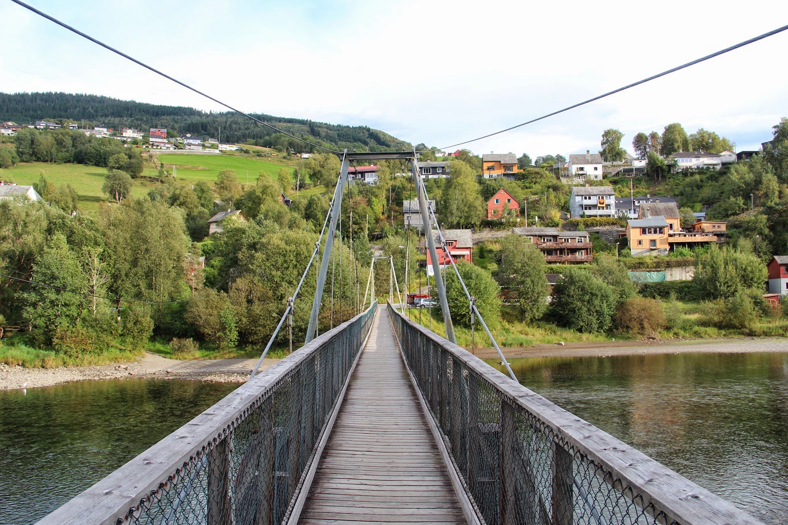 (The swinging bridge across the creek emptying into the lake led us across from downtown to Bordalsgjelet Gorge, about a 30-45 minute walk.)